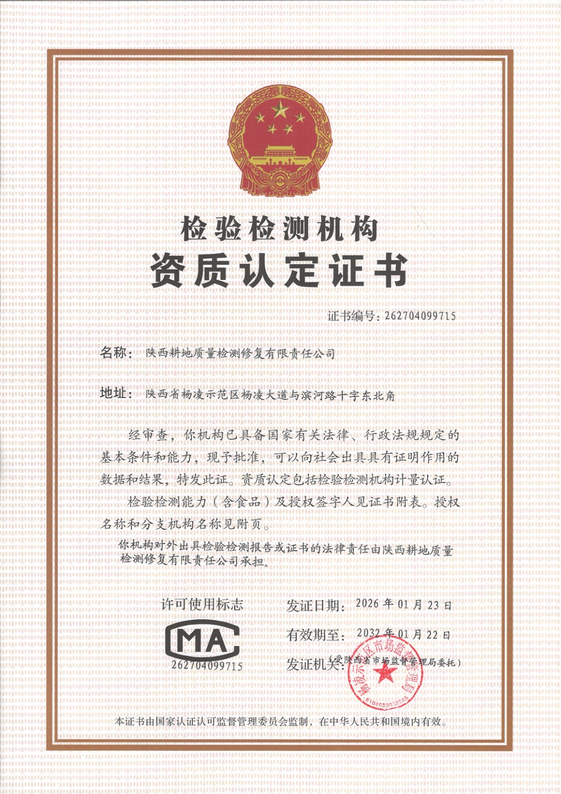 陕西耕地质量检测修复公司土壤检测能力获CMA资质认定